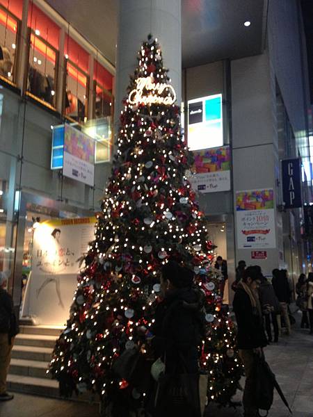 最後,特別請好友幫我拍下--2012/11月底的東京街頭美麗的聖誕樹,讓我們一起感受已經是穿起雪衣季節的日本街頭吧~~