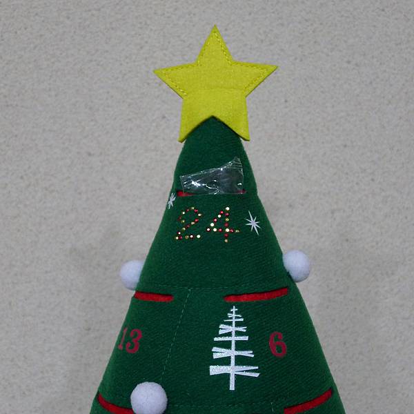 然後,在聖誕樹頂端有一棵黃色的星星,下方還有貼上"24"及"星星"還有"雪人"等等亮晶晶的水鑽,讓聖誕樹看起來更加華麗呢~~