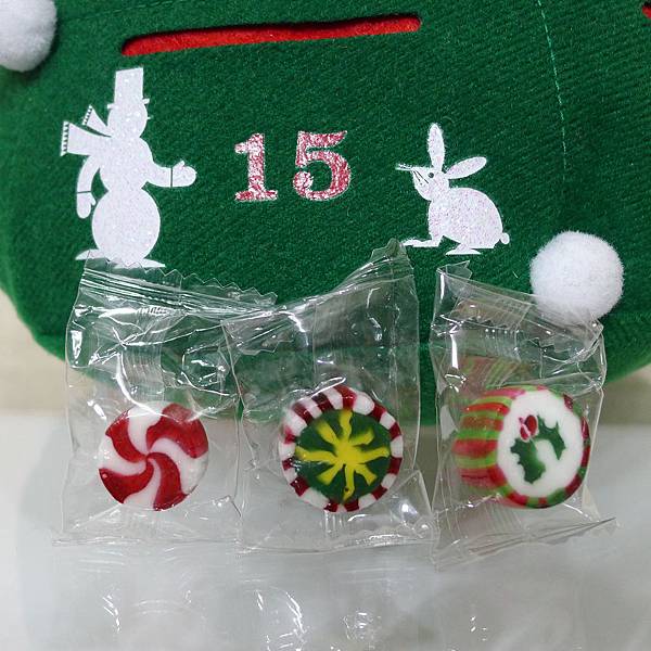 而且在每個小口袋內,都放了一小顆漂亮的糖果喔~~